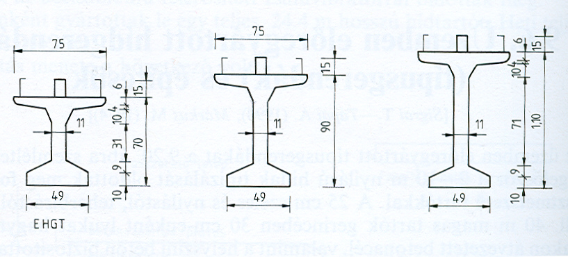 - 1976-77-ben szintén az UVATERV és a BVM kooperációjában készültek el az EHGT típusú „T” keresztmetszetű előregyártott hídgerendák. A hídgerendacsalád BVM nívódíjban részesült. A család tagjai 70, 90, és 110 cm gerincmagasságú tartók. 10-től 30 m nyílásközzel készültek.